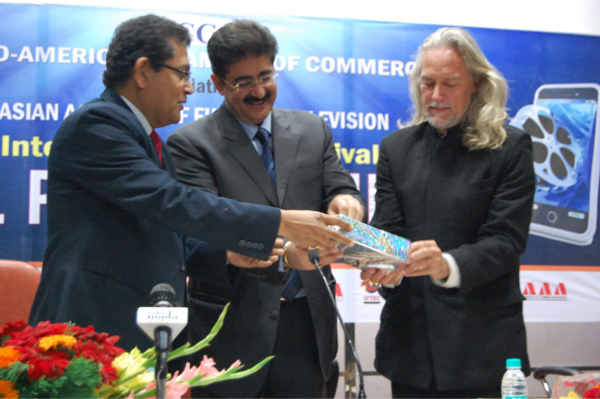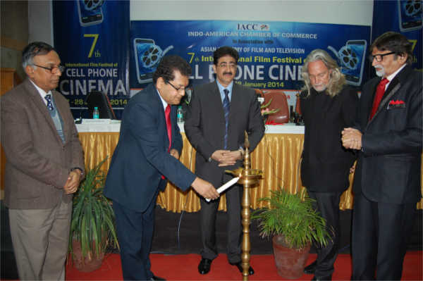 “Music is an art form whose medium is sound and silence. Its common elements are pitch which governs melody and harmony and other is rhythm and its associated concepts are tempo, meter, and articulation, dynamics, and the sonic qualities of timbre and texture” initiated Sandeep Marwah President of Marwah Studios while releasing the theme music of 7th International Festival of Cellphone Cinema 2014 at Noida Film City.