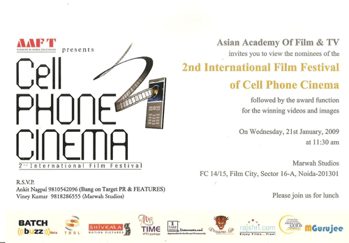 you never know who may give one unique idea while making Mobile Cinema to the best producer of this industry.” Another International jury member Prof Karl Bardosh of Tisch School Of Arts, New York University, who was talking to the audience through internet expressed and explained the need for Mobile Cinema. “Have confidence and conviction people will understand you in no time” ,said Industry Pundit renowned film Writer and Director Rahul Rawail known for his films like Betab, Love Story, Arjun, Arjun Pandit ,Khuch Khati Kuch Mithi etc joined on the jury bench with another Industry Giant Pankaj Parashar, largely known for his films like Jalwa,ChalBazz, Aasman Se Gira ,Himalaya Putra, ect to assess more than 400 entries received from all over the World for 2nd International Festival of Cellphone Cinema.” I am not emphasizing on the techniques but I can say that these films are made by heart ,I can see emotions in all the films.”said Pankaj Parashar. .Rajjat Barjataya of Rajshri.com added the young spirit to the Jury. He replied to all the technical questions asked by the national press. “All entries will get participation certificates,15 top still shots and 11 short films are the recipient of consolation certification. US Dollar 2000 will be awarded to the winners.”said Sandeep Marwah International President of Asian Academy Of Film And Television during the function.”I am expecting 140 million people will be able to watch cinema on Mobile in next three years in India.”Marwah added. The function ended with special thanks to the partners The Film and TV Producers Guild of India, Batchbuzz.com, Dragon.com, Rajshri.com, Times Broad Band and, 1takemedia.com, Shivkala Motion Pictures, International Film And Television Club by Akshay Marwah director of the festival.